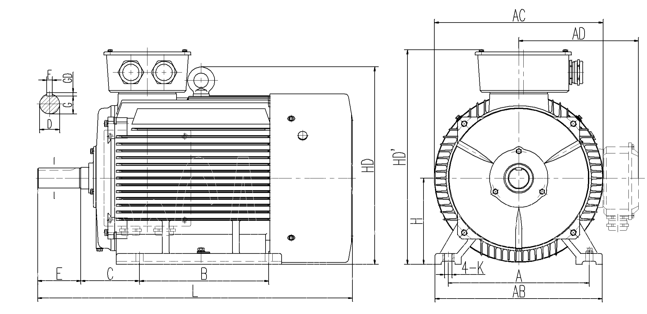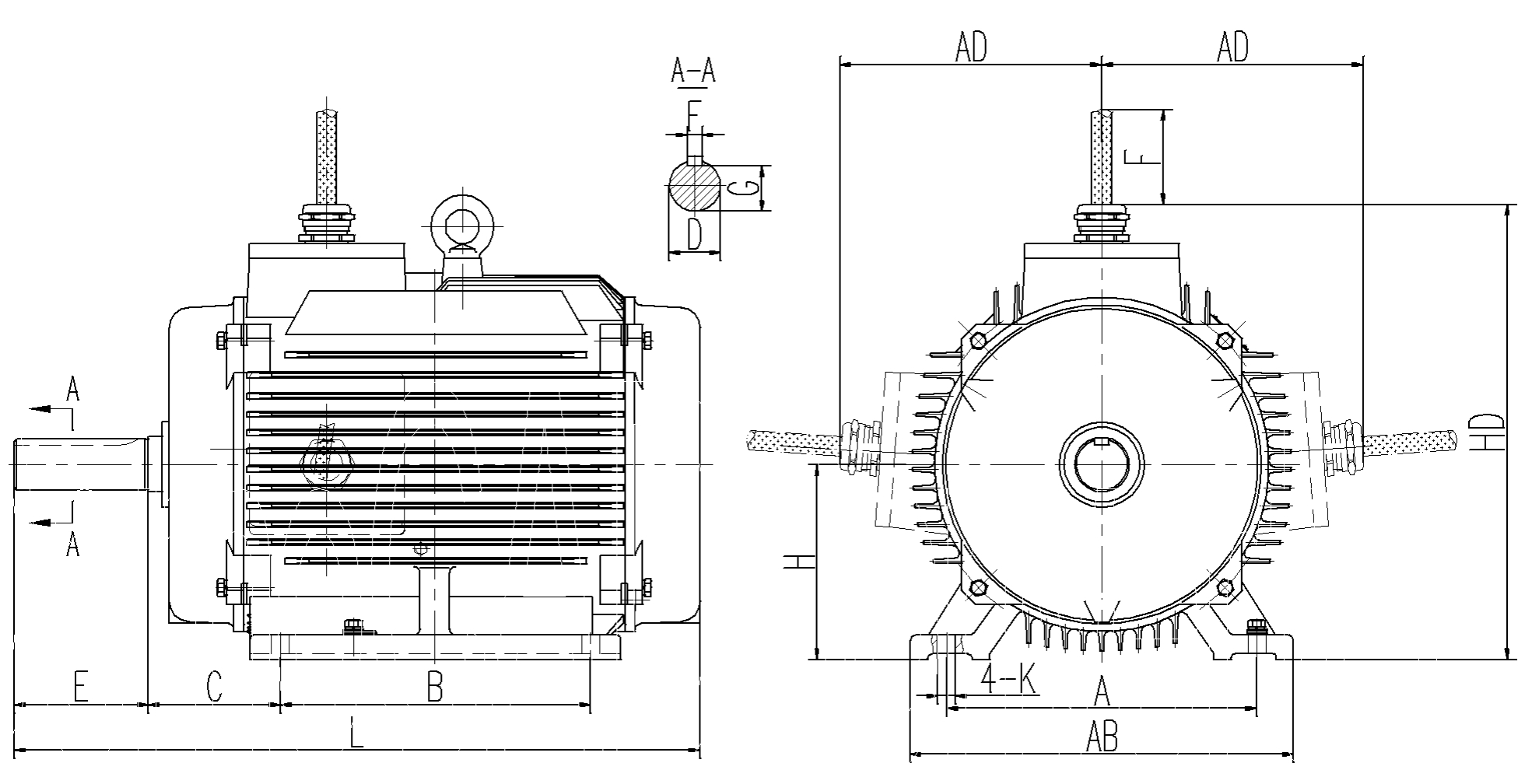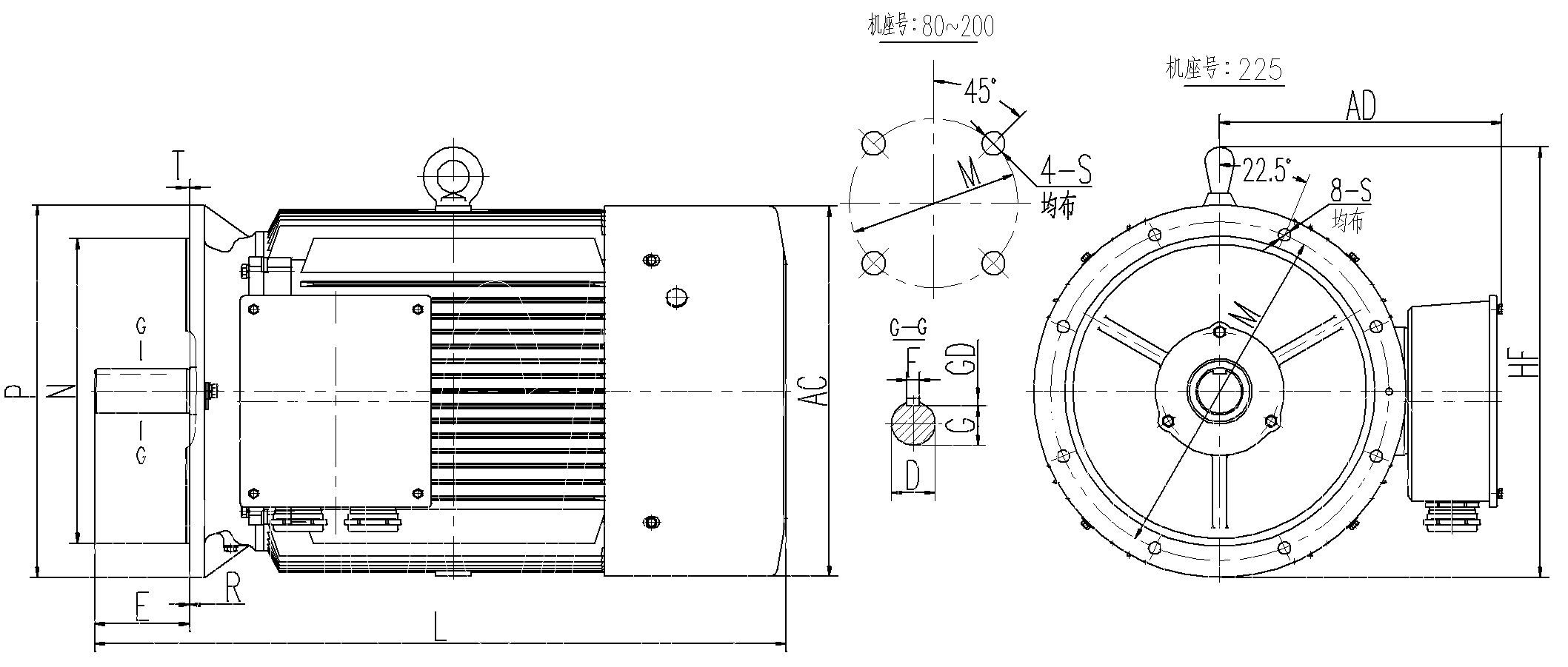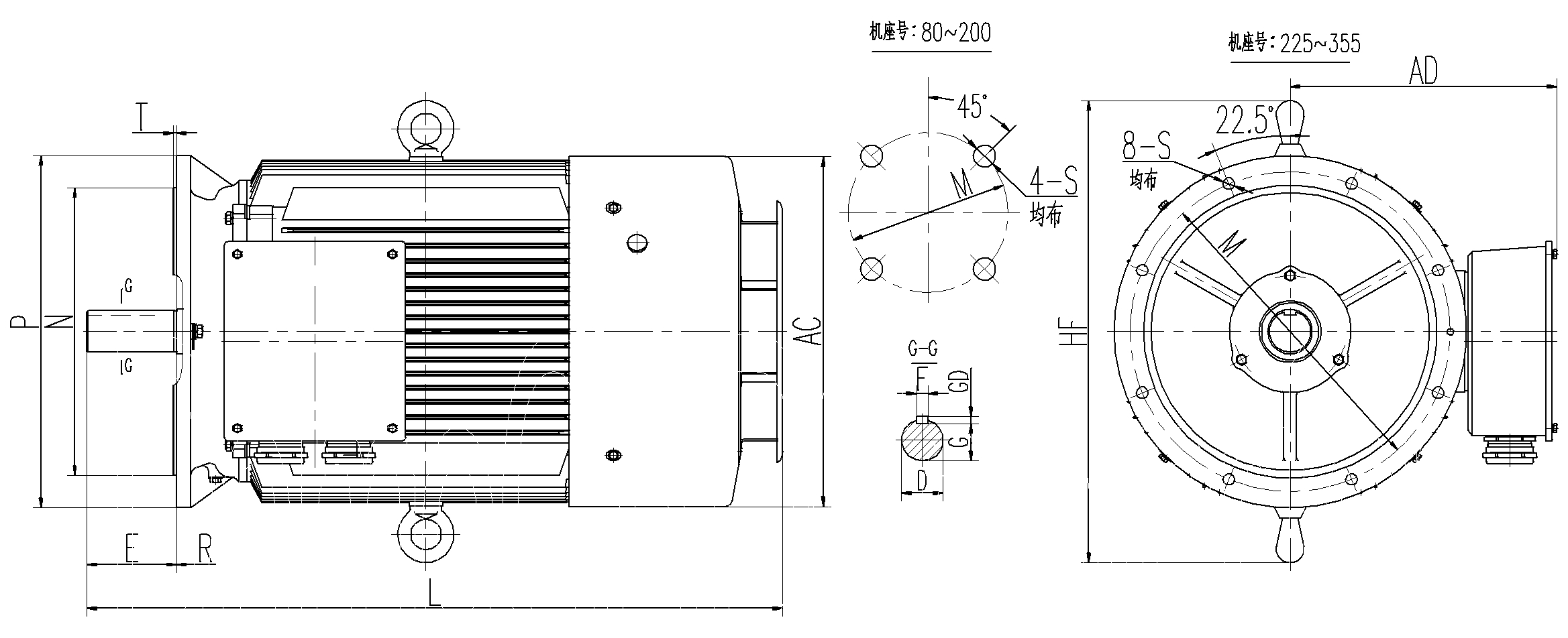 | 機(jī)座號 | 安裝及外形尺寸 | |||||||||||||