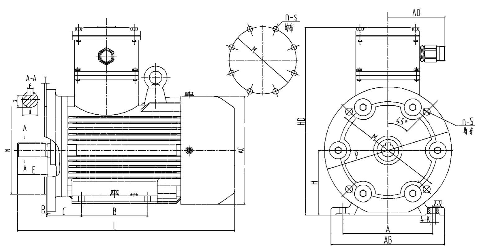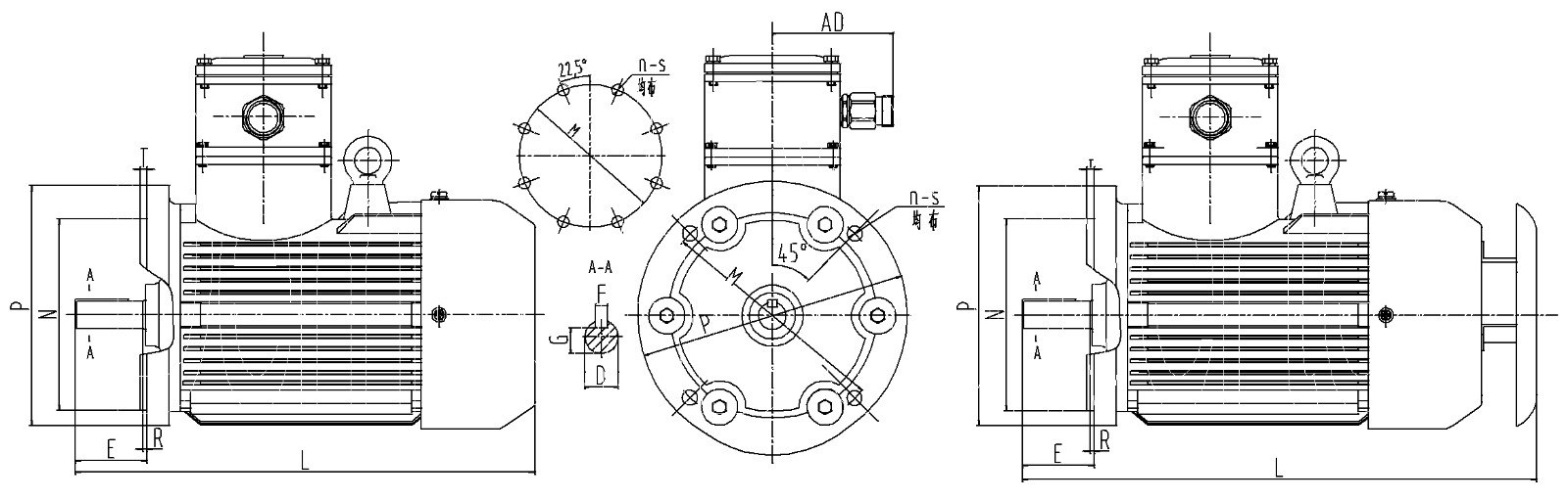 B35 機座帶底腳、端蓋有凸緣(帶通孔)